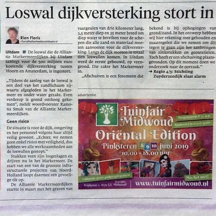 Noord Hollands Dagblad 6 juni 2019 – Loswal dijkversterking stort in – Rien Floris (.jpg 152 kB)