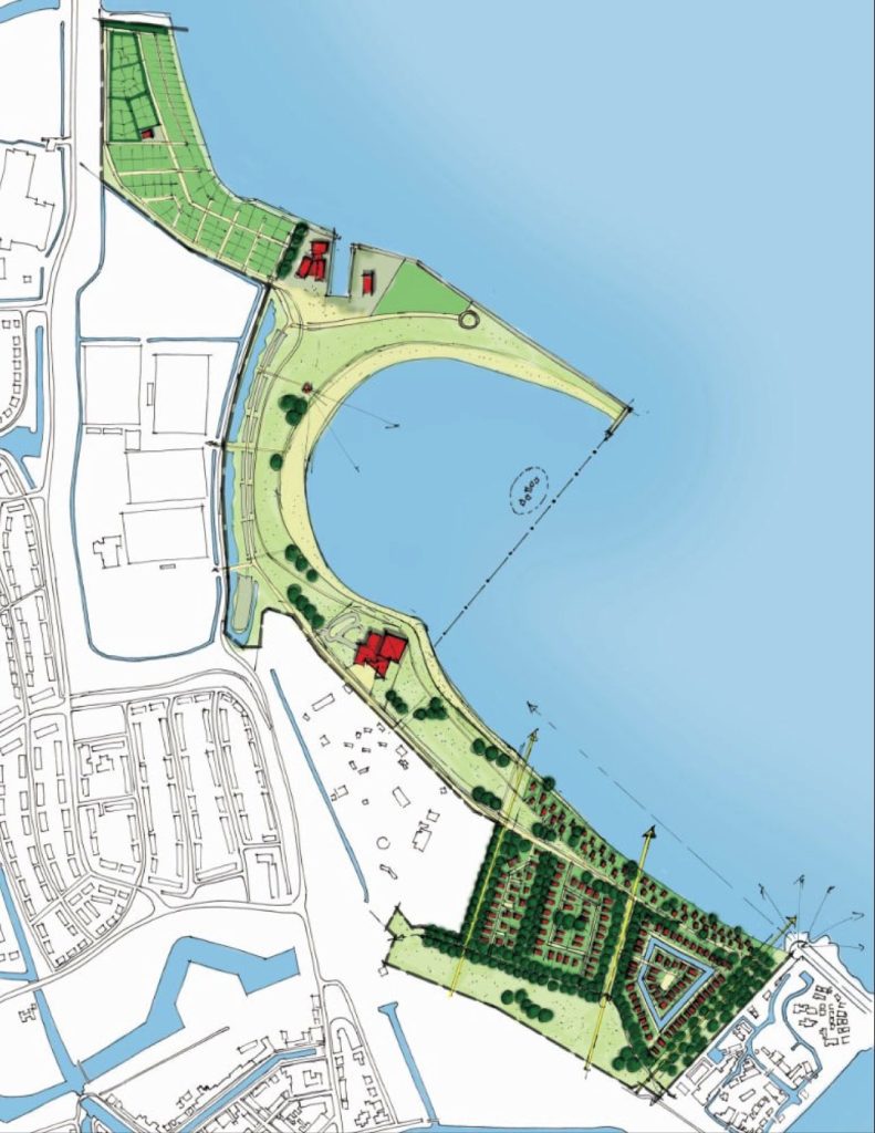 2. Het plan handhaaft een bungalowpark met 200 recreatiewoningen ten behoeve van een kapitaalkrachtig publiek. De IJsselmeervereniging acht dat nog steeds niet noodzakelijk, terwijl dit plan nog steeds zorgt voor aantasting van het aangezicht van Enkhuizen en de duisternis van het IJsselmeer. De bouwhoogte mag dan zijn teruggebracht tot 6 op een smalle strook langs het IJsselmeer en 7 meter voor het overige, maar dat achten we nog steeds te hoog voor die plek. Daarbij dient in ogenschouw te worden genomen, dat die bouwhoogte gerekend wordt vanaf het maaiveld. En dat maaiveld zal – ook al op grond van waterveiligheid – op minstens 2 meer boven het wateroppervlak liggen. We hebben het dus over hoogtes van 8 en 9 m boven het water. Ook is er nog een afwijkingsbevoegdheid, waardoor de hoogtes tot bijna 10 m boven het water kunnen worden opgerekt en kunnen de woningen van een plat dak worden voorzien in plaats van een kap.