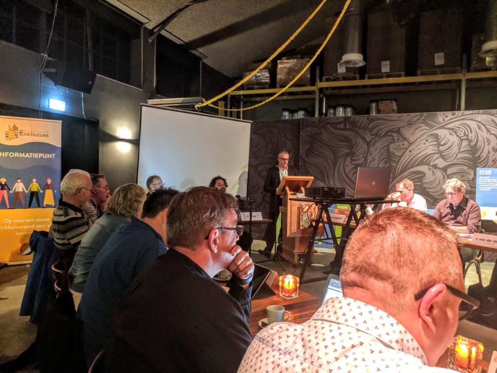 Benno van Tilburg spreekt in namens de IJsselmeervereniging op de raadsvergadering in Brouwerij de Werf