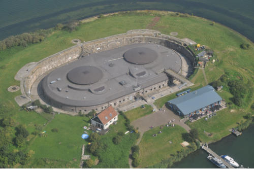 De Stelling van Amsterdam is een 135 kilometer lang verdedigingswerk, aangelegd op een afstand van vijftien tot twintig kilometer rond Amsterdam. Van 1881 tot 1914 werd eraan gewerkt. Nagenoeg alle forten, vestingen en batterijen zijn nog in het landschap te herkennen, voor degene die weet dat ze er zijn. René Ros en Otto Bodemeijer maakten tussen 2012 en 2014 foto’s vanuit een vliegtuig van alle onderdelen van de Stelling. Het levert een uniek perspectief op het werelderfgoed op. De meer dan veertig blow up foto’s hangen in de openlucht, in de droge gracht om het fort van Pampus heen.