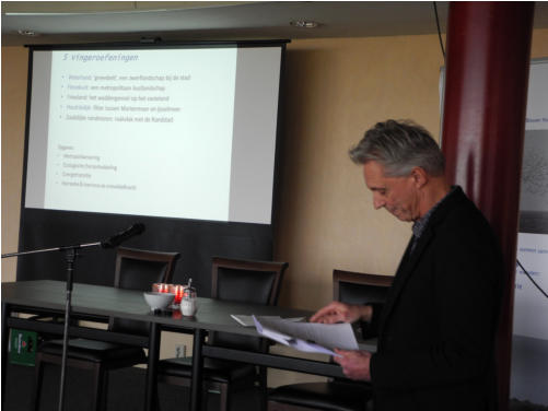 De tweede spreker was Fons Elders met als titel “Oude Dijken & Nieuw Bewustzijn: cultuurschap versus Natuur?” Zijn cultuurfilosofische verhaal gaf behoorlijk veel stof tot nadenken. Hij plaatste o.m. het behoud van natuur en landschap tegen de achtergrond van de tegenstelling Neo-liberalisme en Ecologisch denken en het leuke was dat aan het eind van zijn verhaal nog een toegift kwam waarin Frits Palmboom en Fons Elders met elkaar in discussie gingen n.a.v. reacties door enkele leden uit de zaal.