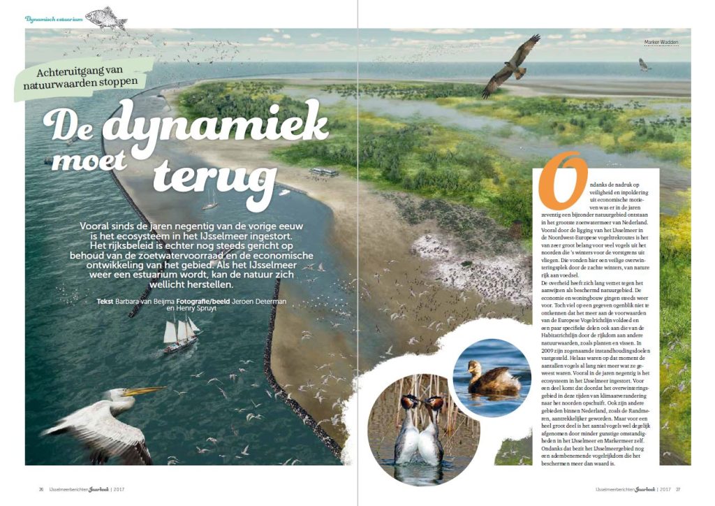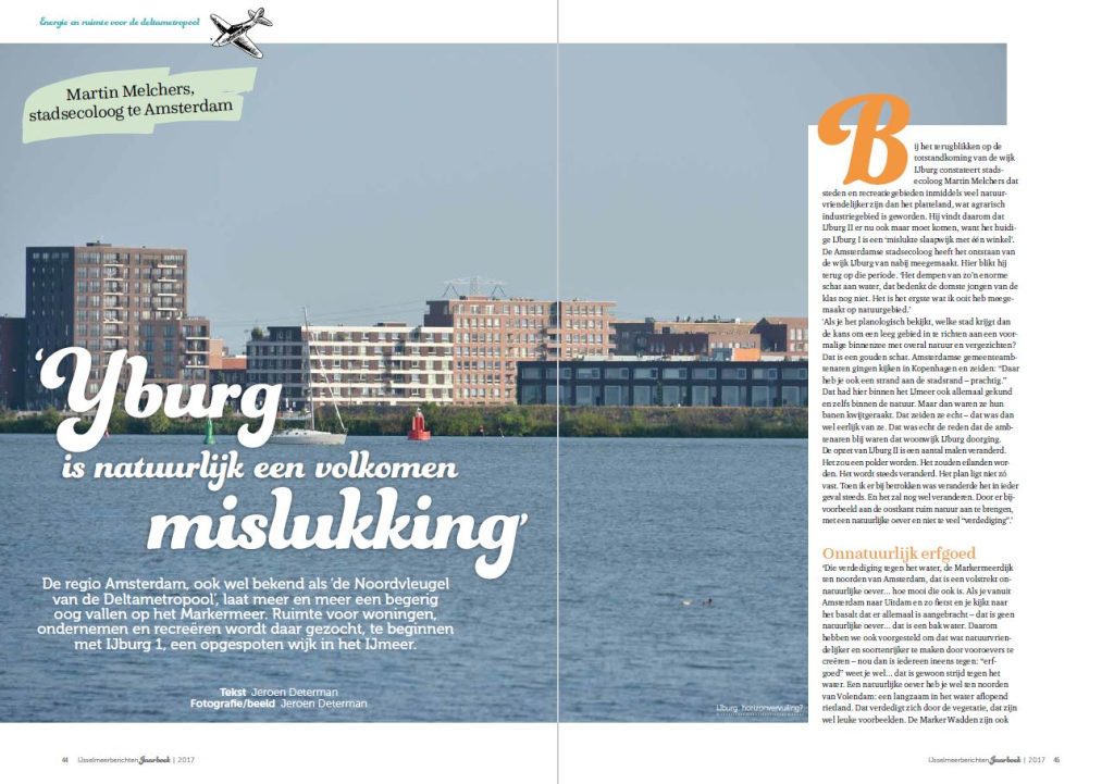 In samenhang met de viering van het 45-jarig bestaan van de vereniging ontstond de gedachte om bij wijze van experiment een jubileum-jaarboek uit te brengen. In dit experiment zou nagegaan kunnen worden hoe het boven genoemde concept zou kunnen gaan werken en zou tevens een mooi jubileumboek tot stand kunnen komen. De inhoud zou een mix moeten zijn van reflectie op de geschiedenis en toekomst van de vereniging, actuele situatie van het IJsselmeergebied met uitwerking van belangrijke thema’s zoals ontwikkeling van natuur en landschap, bedreigingen zoals windturbine parken en de eenzijdige belangstelling voor de economische functie van ruimte van het IJsselmeergebied.
