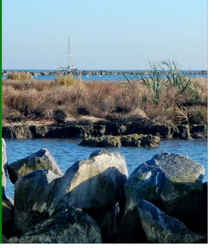 Na de koffie gaat de bijboot overboord. De roeispanen slaan vonken uit het zonbeschenen water dat gorgelt onder despiegel als ik haal. Steeds geniet ik van mijn scheepje onder een andere hoek. Ik klim op een lichtopstand, op keien. Ik land op de ponton, ondanks verbodsborden en voel me een beetje schuldig. Een camera volgt kritisch wat ik doe en ik onderdruk de neiging te zwaaien naar wie later naar de beelden kijkt. Dan weer verder. Openingen in de stenen ring zijn afgesloten met drijvers aan een kabel; ik doe geen pogingen er binnen te komen. Een half dozijn reigers vliegt toch gramstorig op. Kleine eenden die ik niet kan thuisbrengen schrikken op vanachter de stenen en wieken driftig weg. Die krijgen straks gelukkig hun eigen beschermde gebied, afgesloten van al te gretige vogelaars en nieuwsgierige zeilers zoals ik.